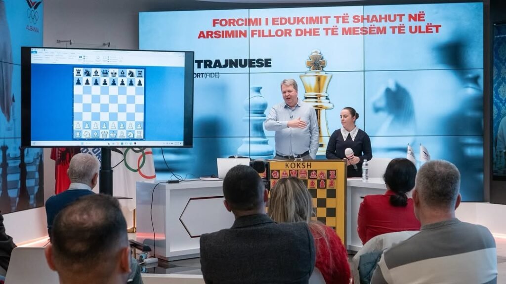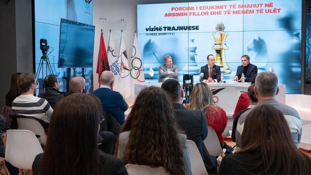 “Shahu në Shkolla” mori një shtysë të rëndësishme këto ditë me vizitën në Shqipëri të GM Nigel Short, Drejtor për Zhvillimin e Shahut në FIDE, i cili erdhi në Tiranë për një agjendë pune të fokusuar te edukimi dhe te ndërtimi i një baze të qëndrueshme për shahun në mjedisin shkollor.